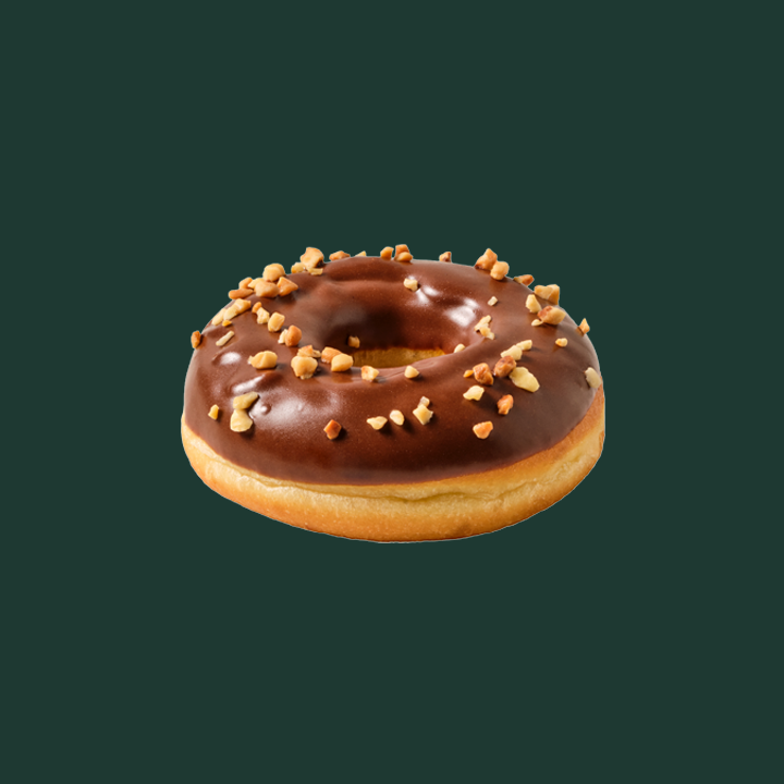İçi çikolata dolgulu, üstü fındık süslemeli halka donut