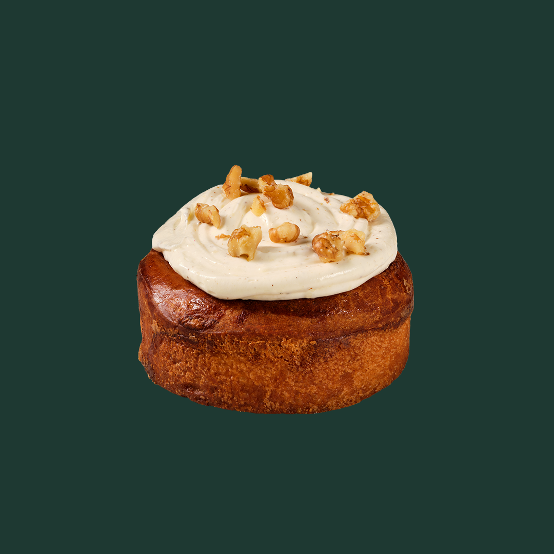 İçi tarçınlı, üzeri krema ve cevizle süslenmiş rulo